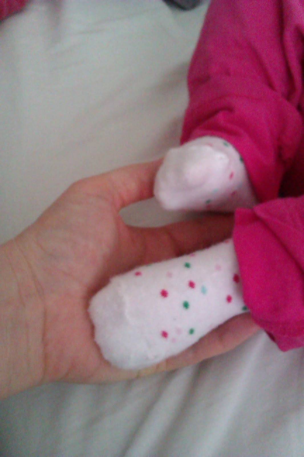 Tegelane üritab selili olles peput üles või ennast edasi lükata. Mõlemad tulevad välja. Niisamuti ka sahmimise käigus enda keset suurt voodit risti keeramine. Ja täna hommikul hakkas üles näitama senisest suuremat huvi oma varvaste vastu. No ilusate mummuliste sokkide sees ei saagi need ju märkamata jääda. :)